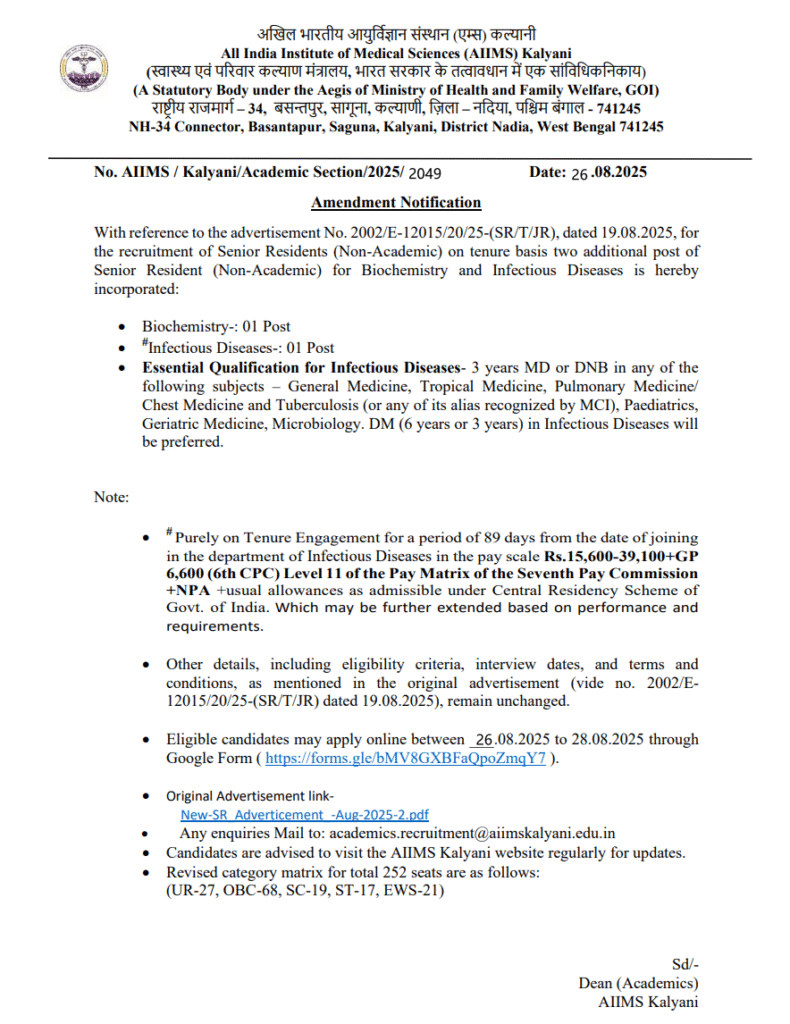 Kalyani AIIMS Recruitment 2025 Links
