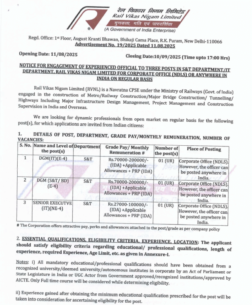 Railway Recruitment 2025: রেল মন্ত্রকের অধীনস্থ অন্যতম গুরুত্বপূর্ণ সংস্থা রেল বিকাশ নিগম লিমিটেড (RVNL)-এর তরফে সম্প্রতি প্রকাশিত হয়েছে নতুন নিয়োগ বিজ্ঞপ্তি। বহু চাকরিপ্রার্থী দীর্ঘদিন ধরে কেন্দ্রীয় সরকারের অধীনস্থ প্রতিষ্ঠানে কর্মসংস্থানের সুযোগ খুঁজে থাকেন। এবার সেই সুযোগ এসেছে সরাসরি রেলের এই সহযোগী সংস্থায়। ইতিমধ্যেই এই পদগুলির জন্য আবেদন প্রক্রিয়া শুরু হয়েছে এবং আগ্রহী প্রার্থীদের নির্ধারিত সময়সীমার মধ্যেই আবেদন জমা দিতে হবে।